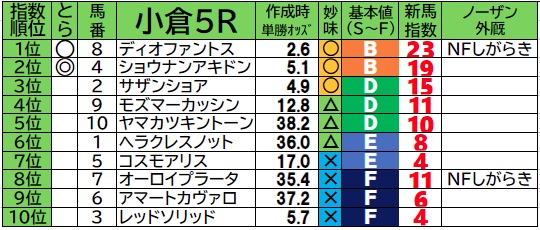 発走12:25 小倉5R 新馬戦 芝1800