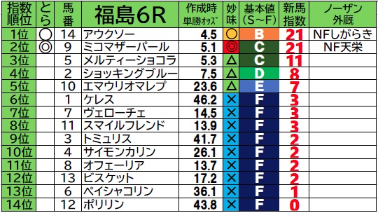 発走13:05 福島6R 新馬戦 芝1200