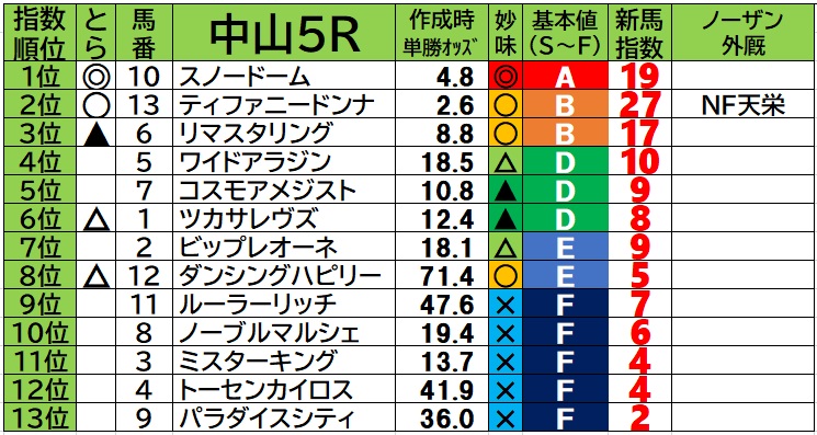 相手は隠れノーザンの⑬。この厩舎に天栄で他も揃っており新馬適正は抜けた指数27。正直再度書きますが隠れノーザンでここまで人気してしまうのかというのが本音。昔はそこまで売れなかったと思うんだけど...。