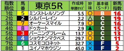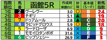 動き評価順は⑤⑦④③⑧②です。上位混戦。
