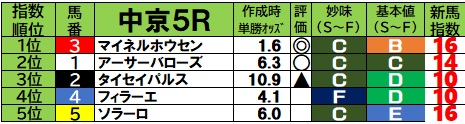 ③はね。回収率あまり良くない条件で、1.6倍なんかで本命つけたくないんですけど、他に推せる条件の馬が居なくて。⑤は条件良いんですが、動きが少し弱い。